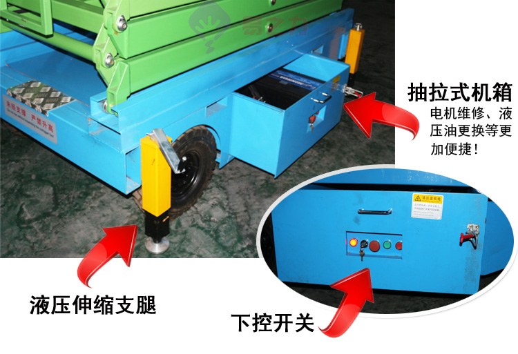 15. 升降機臂架采用拋丸處理,升降機外表采用噴塑處理,既美觀,也不容易生銹.